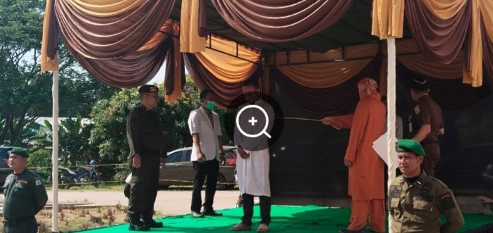 Pelaksanaan Eksekusi cambuk dilakukan di depan umum sebagai bentuk penegakan hukum syariat Islam yang berlaku di Aceh.