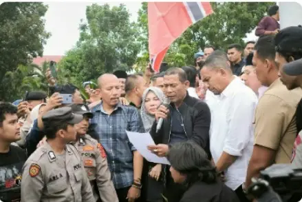 Ketua Dewan Perwakilan Rakyat Aceh (DPRA) saat menyampaikan sepakat atas tuntutan massa aksi demo di Banda Aceh. Foto: Net