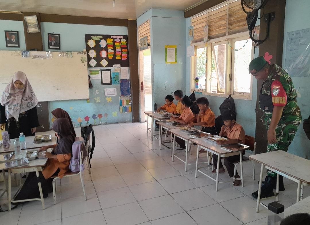 Awasi Penyaluran Makan Bergizi, Piket Koramil 21/BB Kopda Naufal Turun Langsung Ke Sekolah Di Kecamatan Blang Bintang