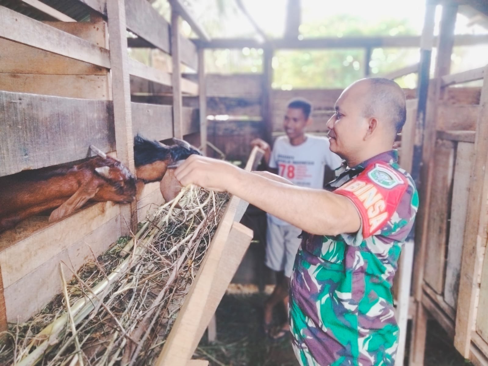 Babinsa Peukan Bada Aktif Dukung Program Ketahanan Pangan Lewat Pembinaan Peternak Kambing