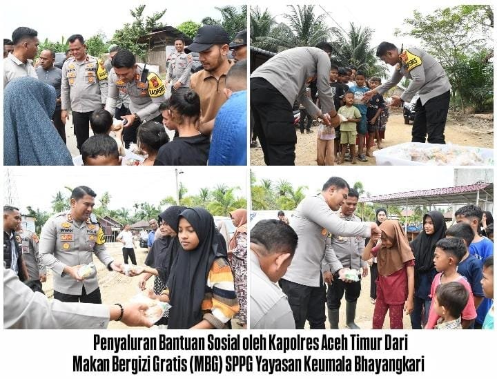 ACEH TIMUR – Bantuan sosial dari Kapolda Aceh Irjen Pol. Drs. Marzuki Alibasyah, M. M, serta Program Makan Bergizi Gratis (MBG) SPPG Yayasan Keumala Bhayangkari disalurkan Kapolres Aceh Timur kepada masyarakat terdampak bencana banjir di wilayah hukum Polres Aceh Timur, Sabtu, 21 Desember 2025.