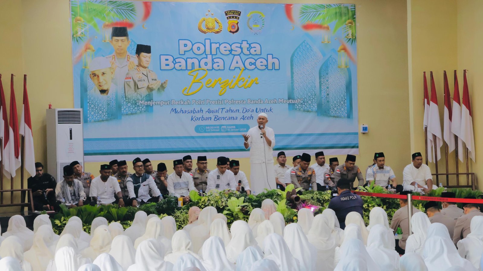 Banda Aceh.Polresta Banda Aceh menginisiasi kegiatan dzikir dan doa bersama sebagai wujud kepedulian terhadap korban bencana hidrometeorologi yang melanda sejumlah wilayah Aceh serta beberapa daerah di Sumatera.