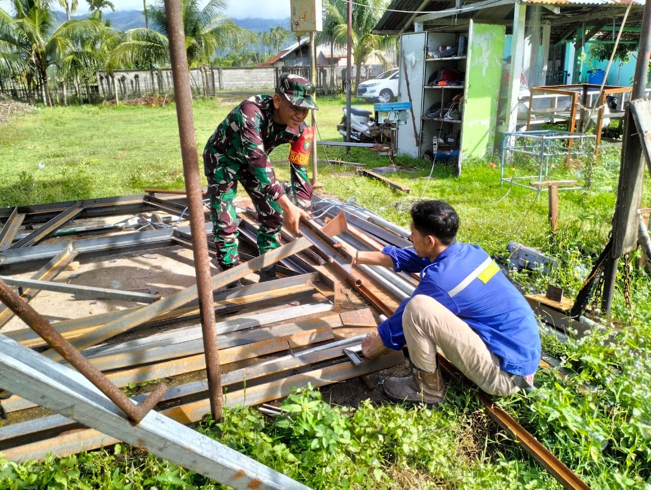 Dalam kegiatan tersebut, Babinsa turut terlibat membantu para pekerja yang tengah mengangkat dan menata peralatan kerja seperti besi dan perlengkapan lapangan lainnya. Aksi spontan Babinsa ini mendapat sambutan hangat dari para karyawan yang merasa diperhatikan dan didukung oleh aparat TNI di tengah kesibukan mereka.