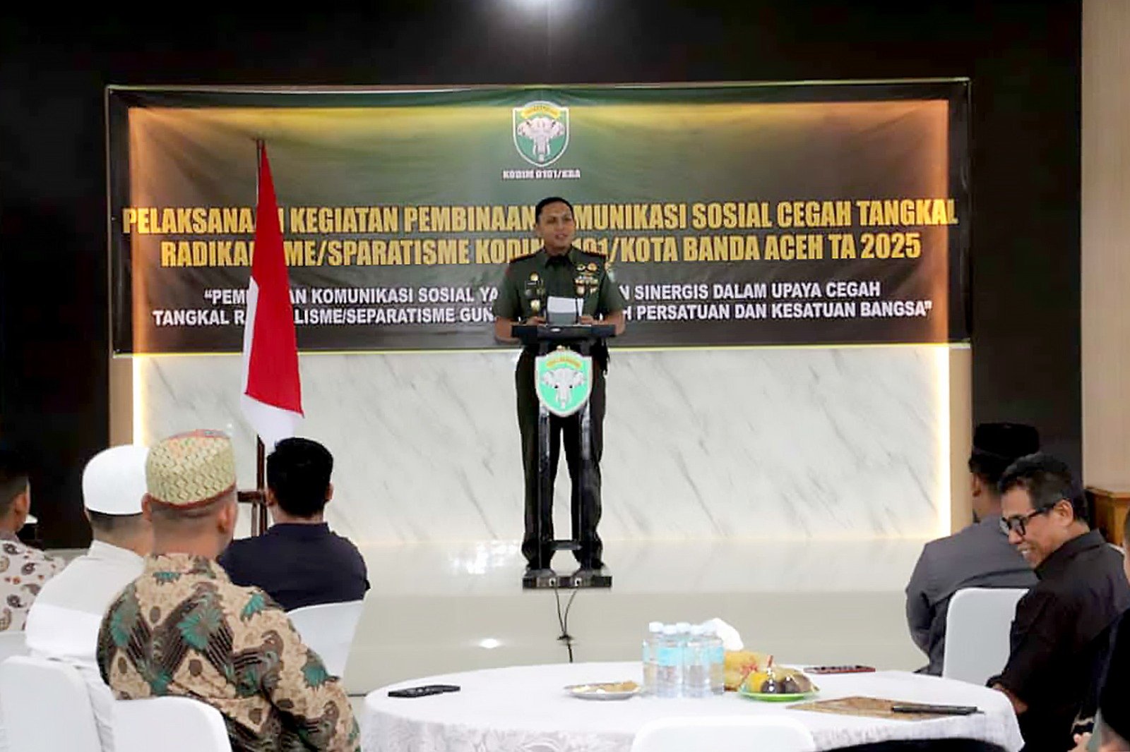 Banda Aceh – Dalam upaya memperkuat ketahanan bangsa dari ancaman ideologi yang dapat memecah belah persatuan, Komando Distrik Militer (Kodim) 0101/Kota Banda Aceh menggelar kegiatan Komunikasi Sosial (Komsos) Cegah Tangkal Radikalisme/Separatisme di Aula Lantai II Makodim 0101/Kota Banda Aceh, Jalan S.T.A. Mahmudsyah Nomor 32, Gampong Baro, Kecamatan Baiturrahman, Kota Banda Aceh, Kamis (06/11/2025).