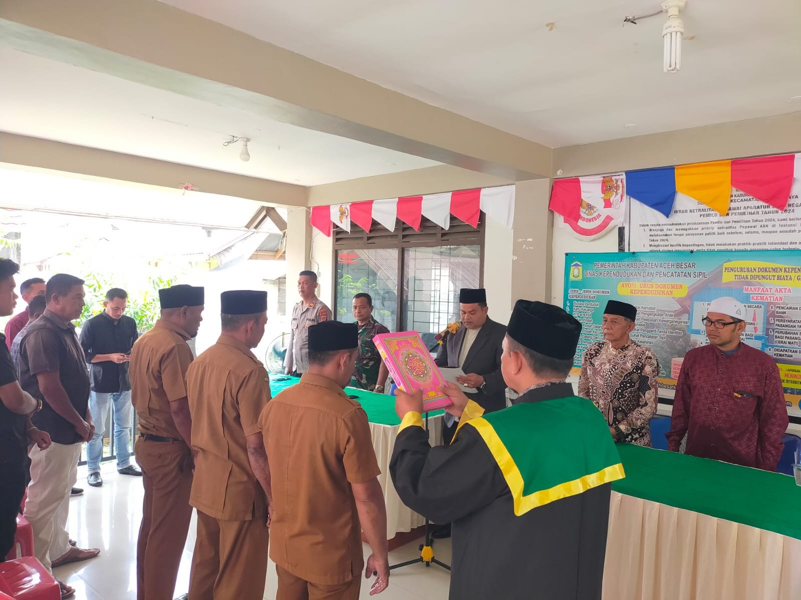 Kegiatan pelantikan berjalan dengan tertib dan khidmat serta diakhiri dengan doa bersama untuk kelancaran tugas para penjabat keuchik yang baru.