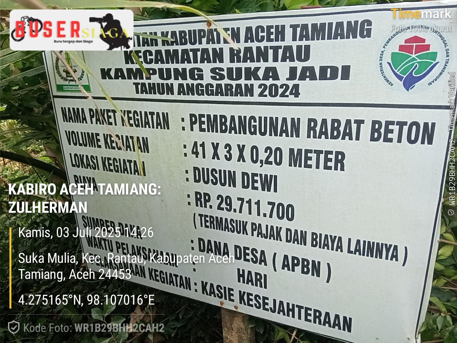Aceh Tamiang/ Buser Siaga – Datuk Penghulu ( Kepala Desa.red ) Suka Jadi Kecamatan Rantau Kabupaten Aceh Tamiang ,Nurianto ,