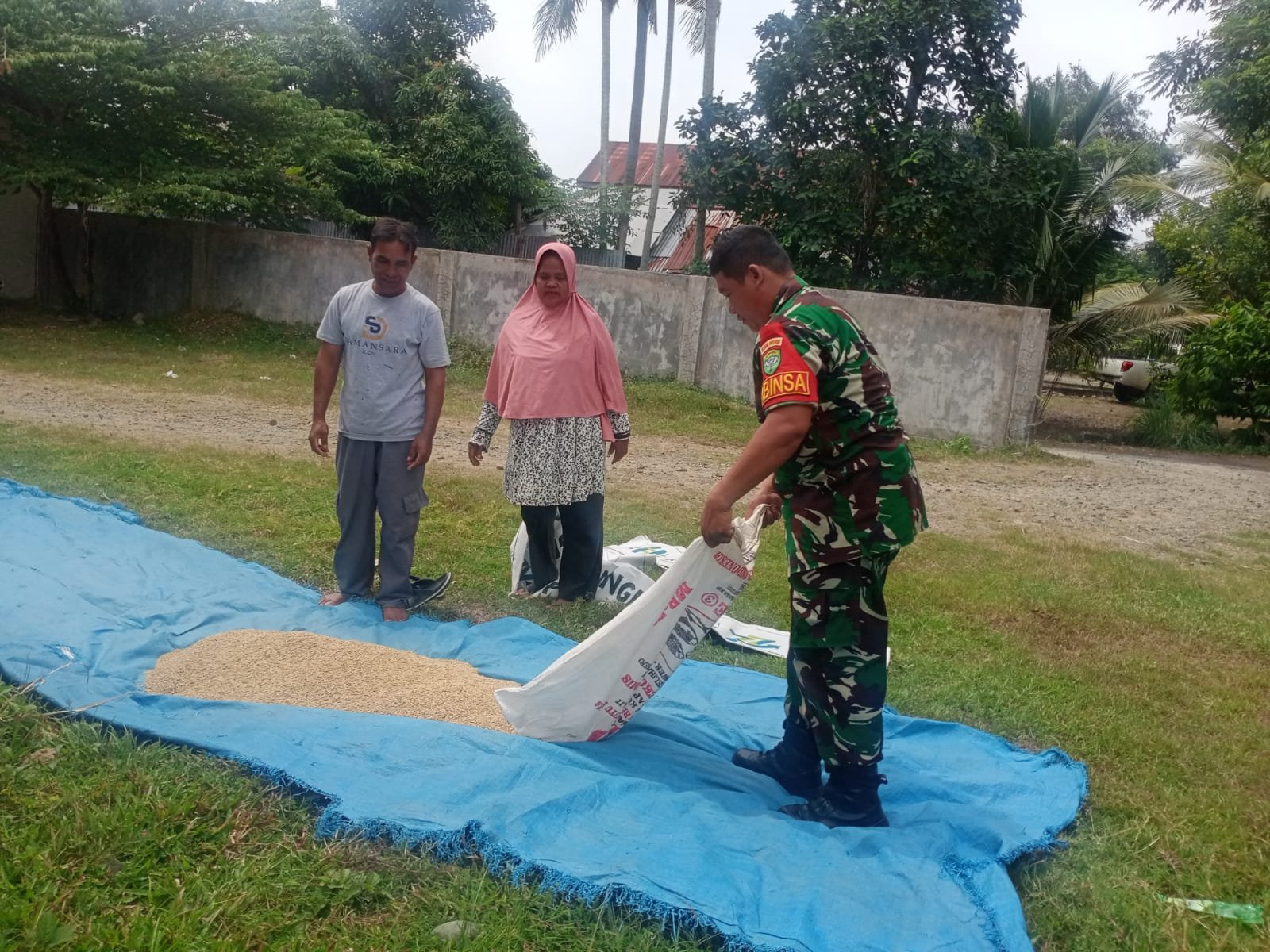 Dekat Dengan Masyarakat, Babinsa Blang Bintang Jalin Silaturahmi Sambil Jemur Padi