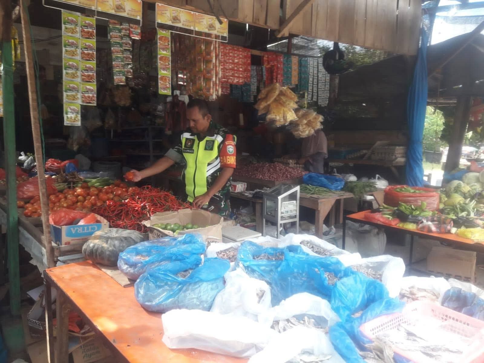 Dalam pemantauan tersebut, Serda Syafriadi menyusuri sejumlah kios dan pedagang di pasar lokal untuk menanyakan kondisi stok serta mengecek perkembangan harga kebutuhan pokok seperti beras, minyak goreng, telur, gula, dan beberapa komoditas penting lainnya. Monitoring rutin seperti ini menjadi langkah preventif dalam mengantisipasi potensi lonjakan harga yang dapat membebani masyarakat.
