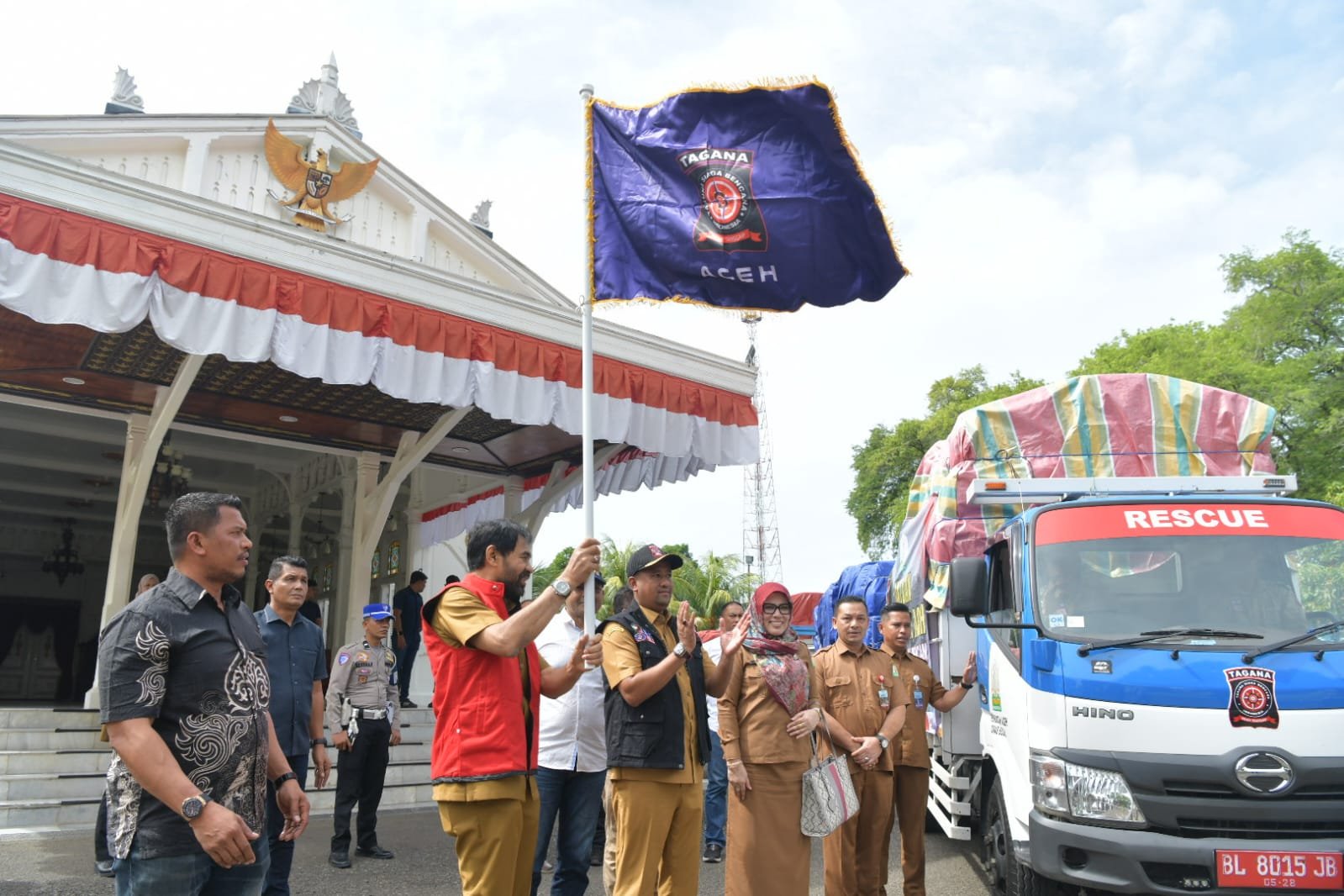 Banda Aceh — Gubernur Aceh, H. Muzakir Manaf, secara resmi melepas bantuan persediaan logistik penanggulangan bencana untuk sepuluh (10) kabupaten/kota di Aceh. Prosesi pelepasan berlangsung di Pendopo Gubernur Aceh pada Selasa, 18 November 2025 pukul 10.00 WIB, yang didistribusikan menggunakan truck tagana.
