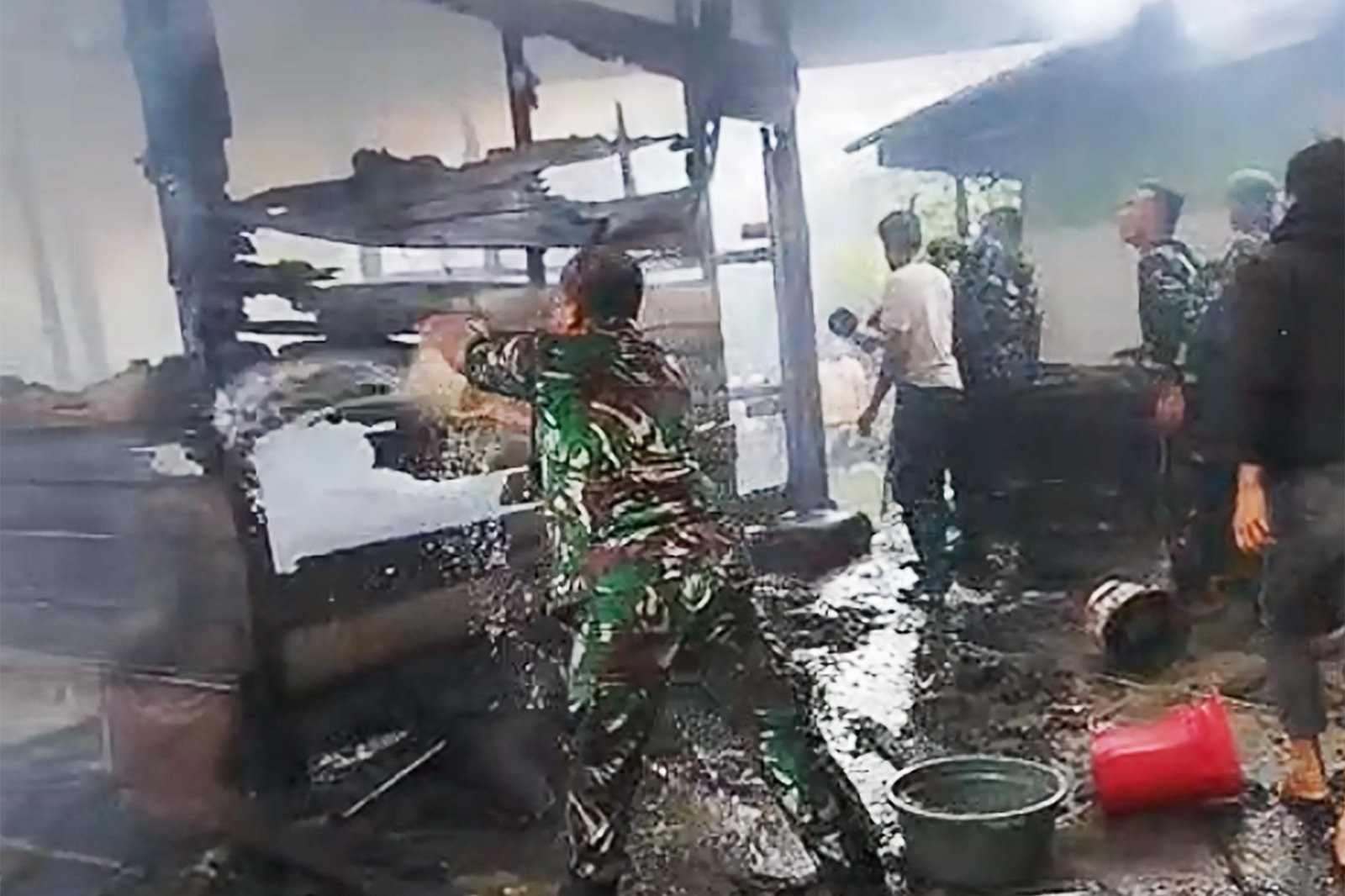 Momen kebersamaan yang diselimuti duka mendadak berubah menjadi aksi tanggap darurat. Saat dalam perjalanan kembali dari lokasi pemakaman, rombongan prajurit secara kebetulan mendapati kepulan asap tebal dan kobaran api dari salah satu rumah penduduk. Tanpa menunggu instruksi formal, puluhan personel dengan cepat merespons situasi darurat tersebut.