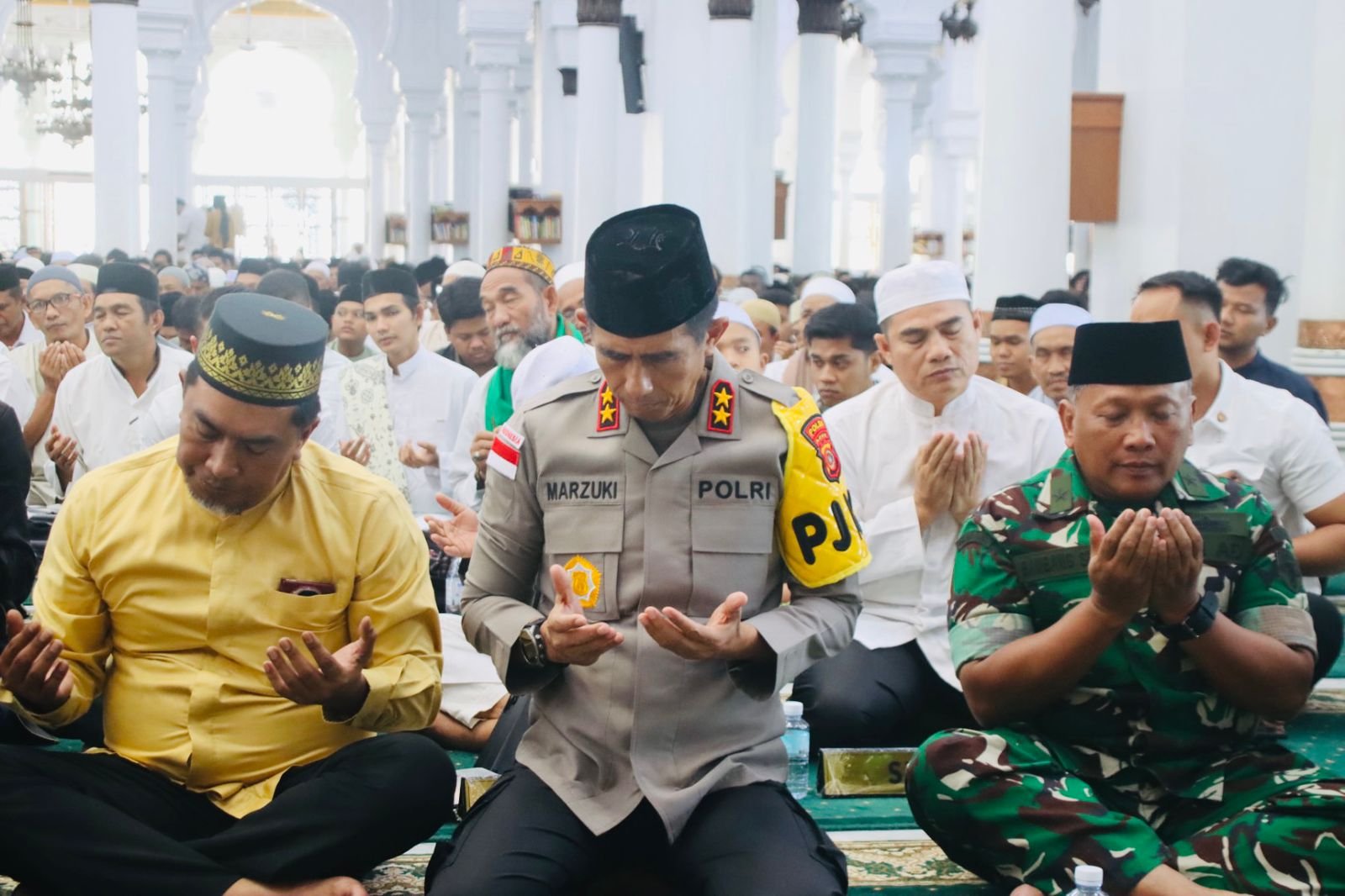 Banda Aceh — Kapolda Aceh Irjen Pol. Drs. Marzuki Alibasyah, M.M., menghadiri kegiatan doa bersama dalam rangka peringatan 21 tahun tragedi tsunami Aceh yang digelar di Masjid Raya Baiturrahman, Banda Aceh, Jumat, 26 Desember 2025.