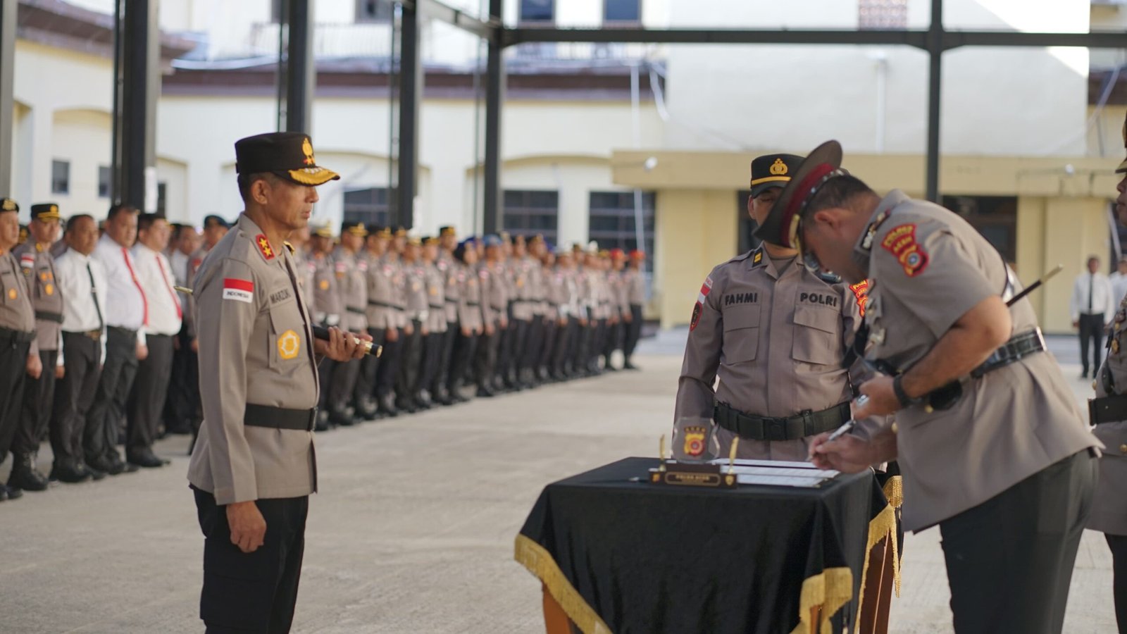 Banda Aceh — Kapolda Aceh Irjen Pol. Drs. Marzuki Alibasyah, M. M, memimpin upacara serah terima jabatan (Sertijab) 4 Pejabat Utama Polda Aceh dan 3 Kapolres jajaran, di Meuligoe Polda Aceh, Senin, 5 Januari 2026.