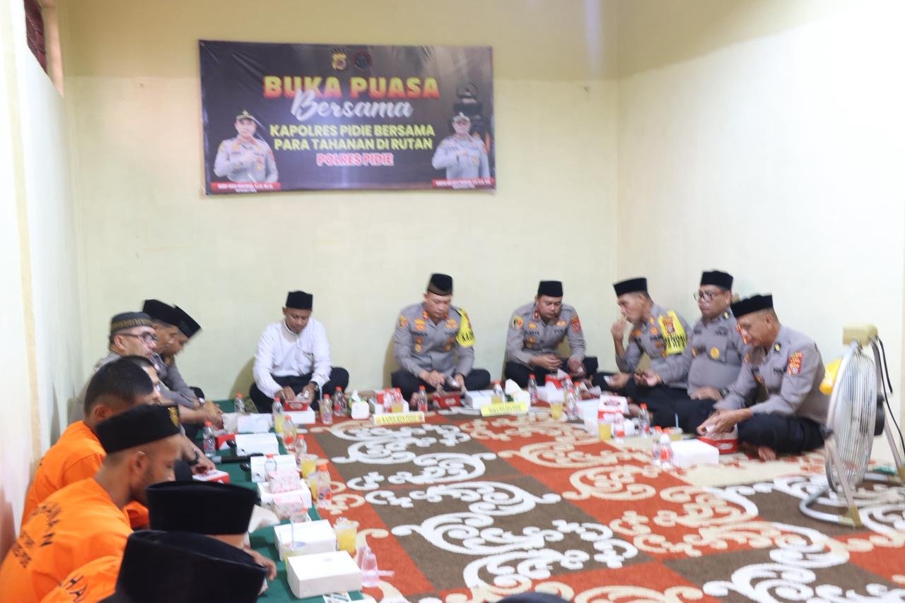 Sigli – Dalam rangka meningkatkan pembinaan rohani dan mempererat hubungan kemanusiaan, Kapolres Pidie AKBP Jaka Mulyana, SIK, MIK menggelar kegiatan buka puasa bersama warga binaan di Rumah Tahanan (Rutan) Polres Pidie, Rabu (18/3/2026).