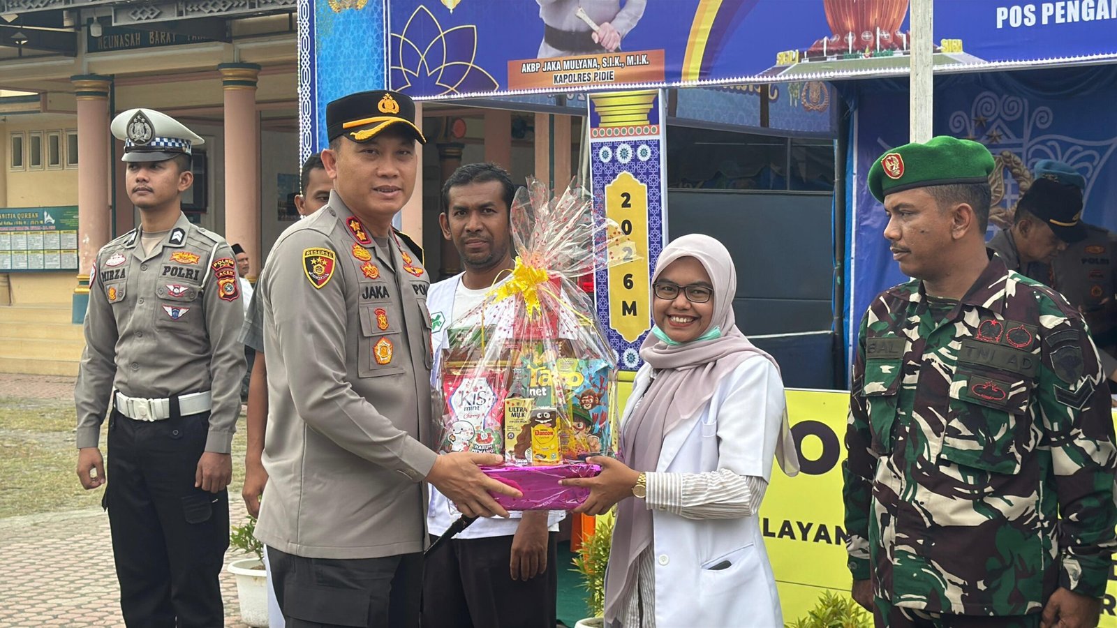Kapolres Pidie dan Ketua Bhayangkari Cabang Pidie Kunjungi Pos Pam, Pos Yan dan Pos Pantau, Serahkan Bingkisan untuk Personel Pengamanan