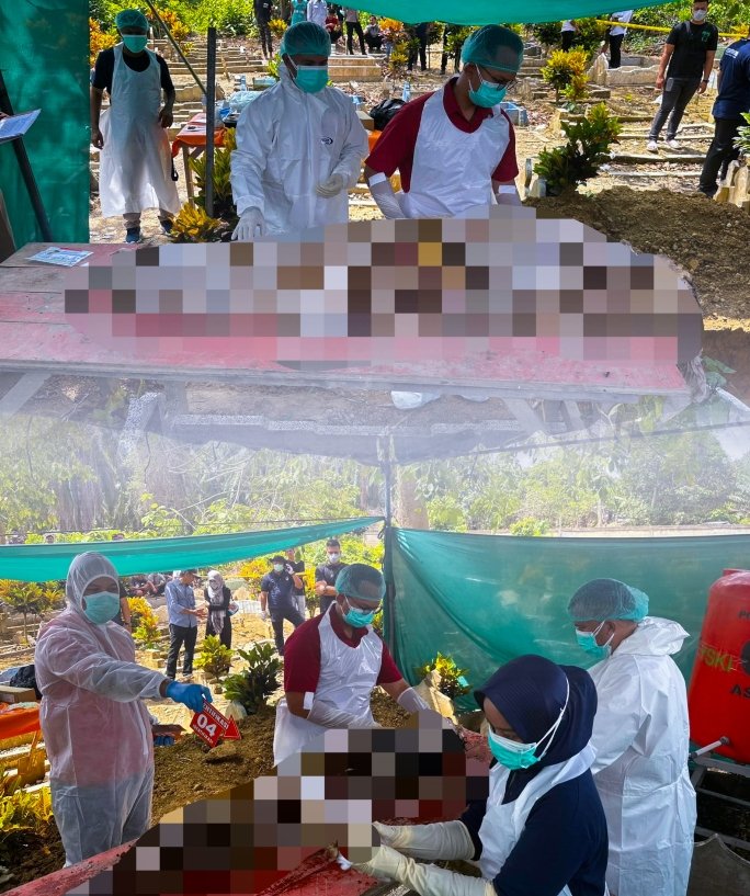 Proses penggalian kubur dan pembedahan jenazah berlangsung tertib dan dimulai tepat pukul 09.50 WIB. Tim dipimpin langsung oleh Ps. Kaur Doksik Biddokkes Polda Aceh, Iptu drg. Ega Dwi Cahyani, bersama tiga personel lainnya.