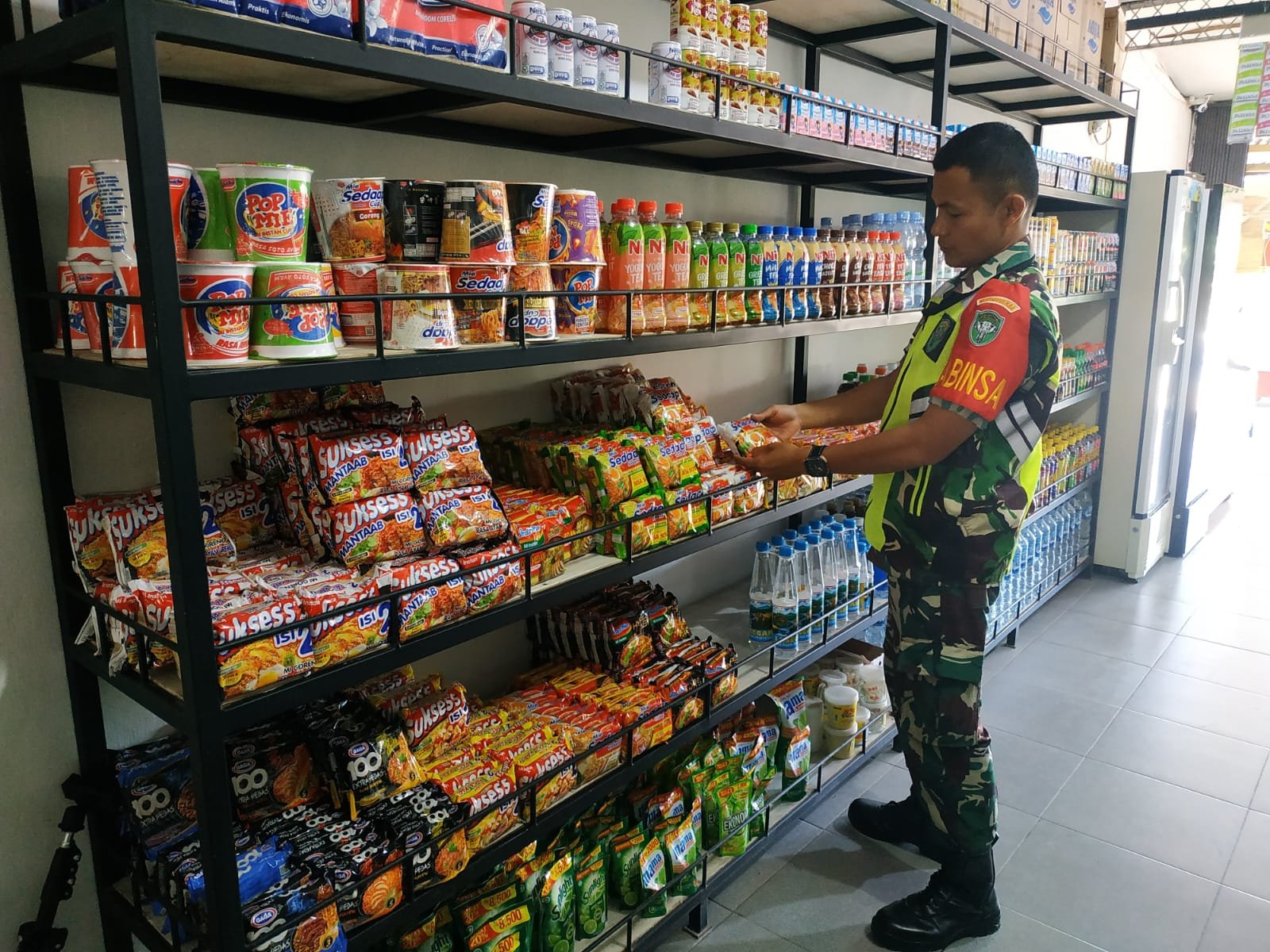 Aceh Besar – Dalam rangka memastikan harga kebutuhan pokok tetap stabil dan terjangkau bagi masyarakat, Piket Koramil 21/Blang Bintang Kodim 0101/Kota Banda Aceh, Kopda Naufal, melaksanakan pengecekan harga sejumlah bahan pokok di salah satu toko klontong di wilayah Kecamatan Blang Bintang, Kabupaten Aceh Besar, Jumat (26/9/2025).