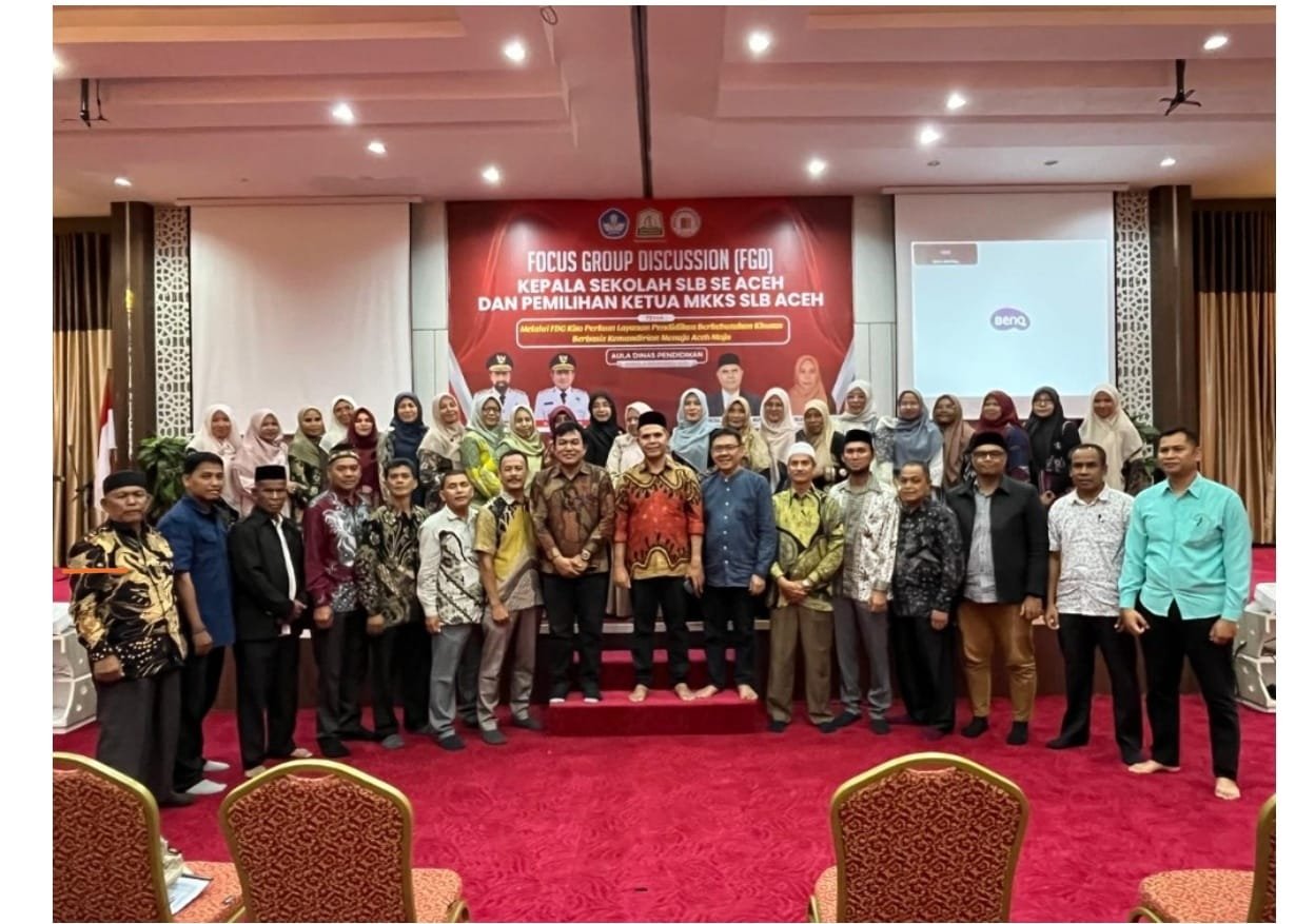 Banda Aceh — Dengan semangat kebersamaan dan kepedulian terhadap masa depan anak berkebutuhan khusus (ABK), para Kepala Sekolah Luar Biasa (SLB) se-Aceh menggelar Focus Group Discussion (FGD) sekaligus pemilihan Ketua Musyawarah Kerja Kepala Sekolah (MKKS) SLB Provinsi Aceh di Aula Dinas Pendidikan Aceh, Kamis (6/11/2025).