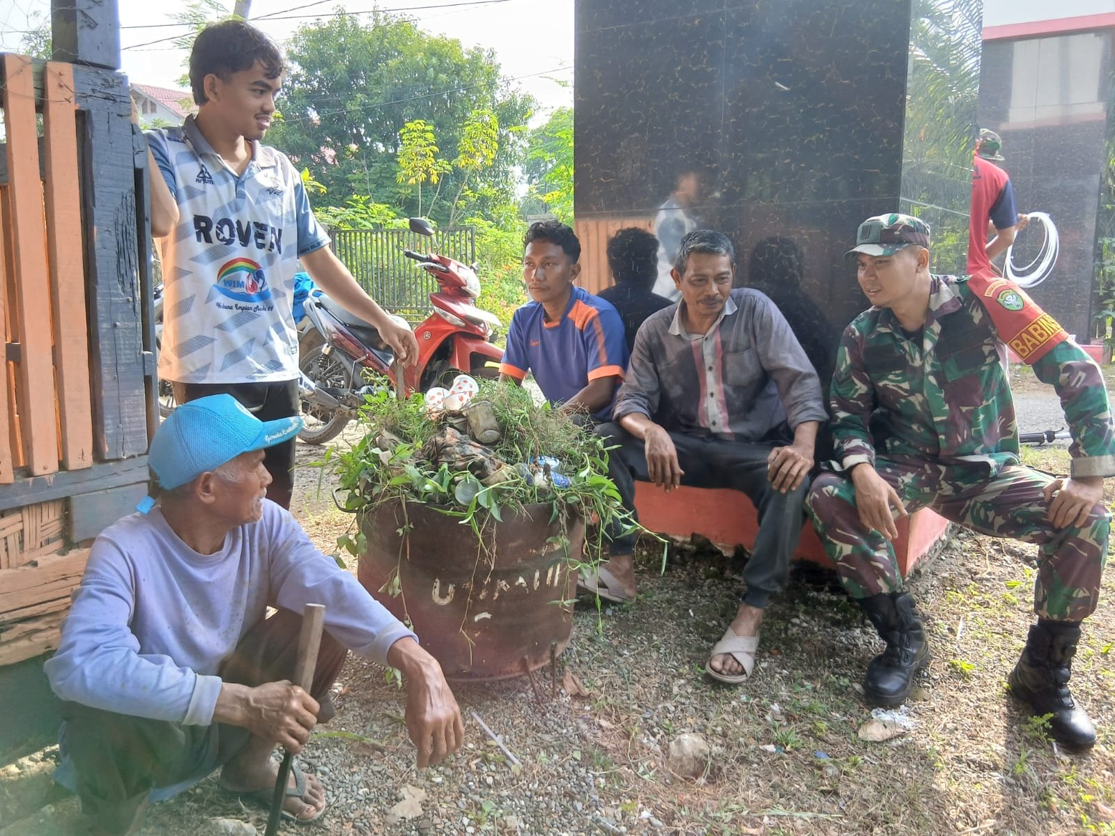 Aceh Besar.— Dalam upaya menumbuhkan kesadaran masyarakat terhadap pentingnya kebersihan lingkungan, Babinsa Koramil 02/SKM, Serda Catur Prastowo, melaksanakan kegiatan komunikasi sosial (komsos) bersama warga desa binaan.