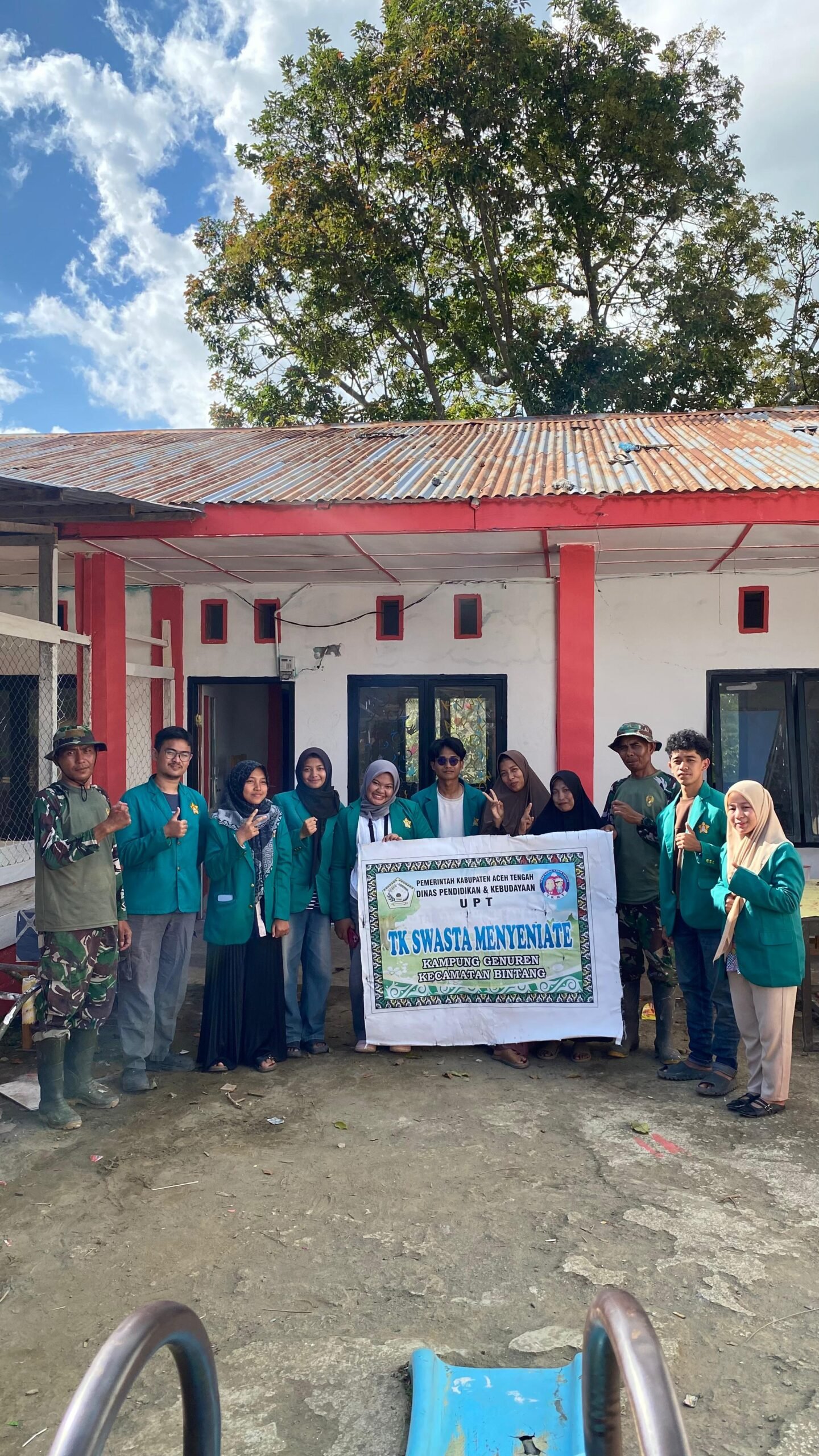 “Dalam proses pembersihan dan pengecatan bangunan TK, kami juga dibantu oleh bapak-bapak dari Dandim 0106 Aceh Tengah,” ungkapnya.