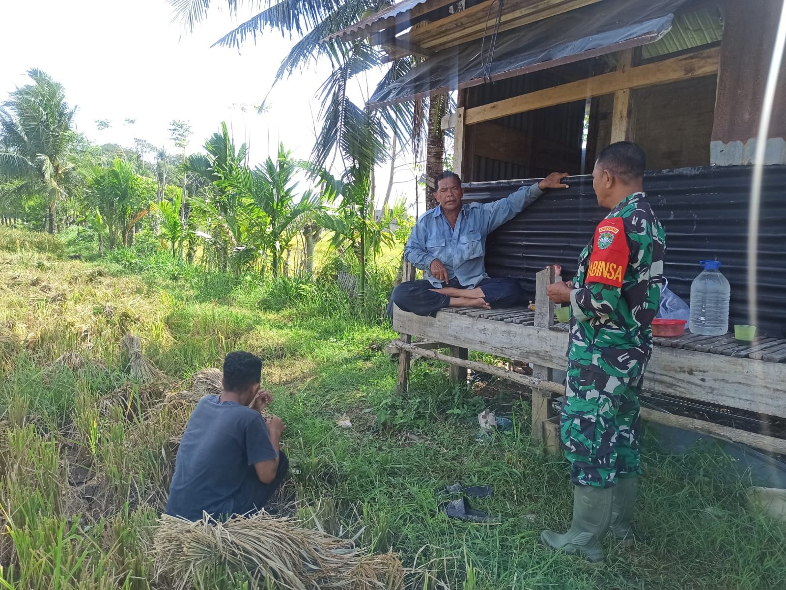 Aceh Besar. Babinsa Koramil 11/Darul Imarah, Pelda Syamsuar, melaksanakan kegiatan komunikasi sosial (komsos) bersama warga desa binaan di Gampong Jambo Pak Hasbi, Kecamatan Darul Imarah, Kabupaten Aceh Besar.