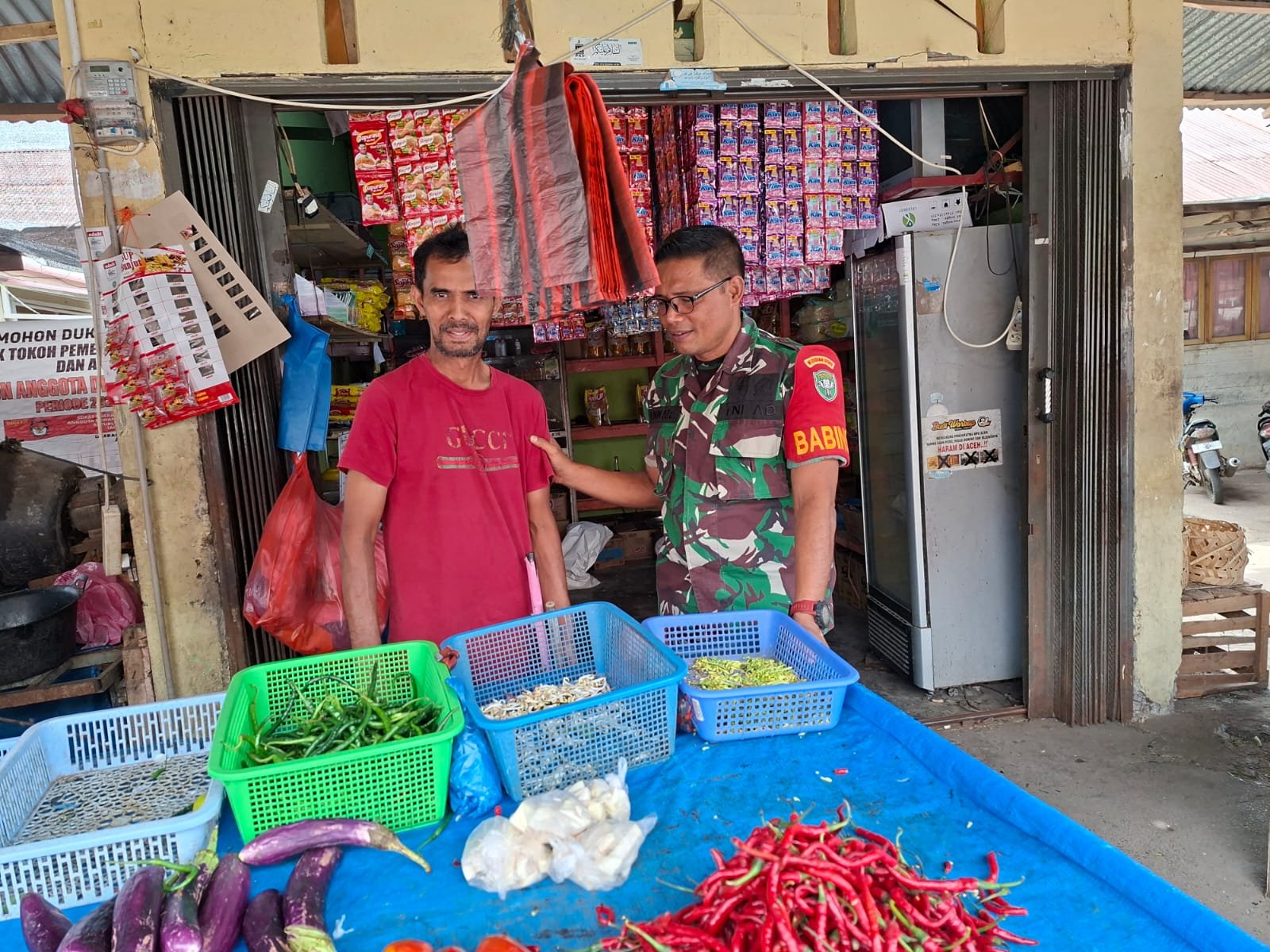 Banda Aceh — Sebagai bentuk kepedulian terhadap kondisi ekonomi masyarakat, Babinsa Posramil Lueng Bata, Sertu Anwar, melaksanakan kegiatan monitoring perkembangan harga kebutuhan pokok (sembako) di pasar tradisional Kecamatan Lueng Bata, Kota Banda Aceh, Senin (19/1/2026).