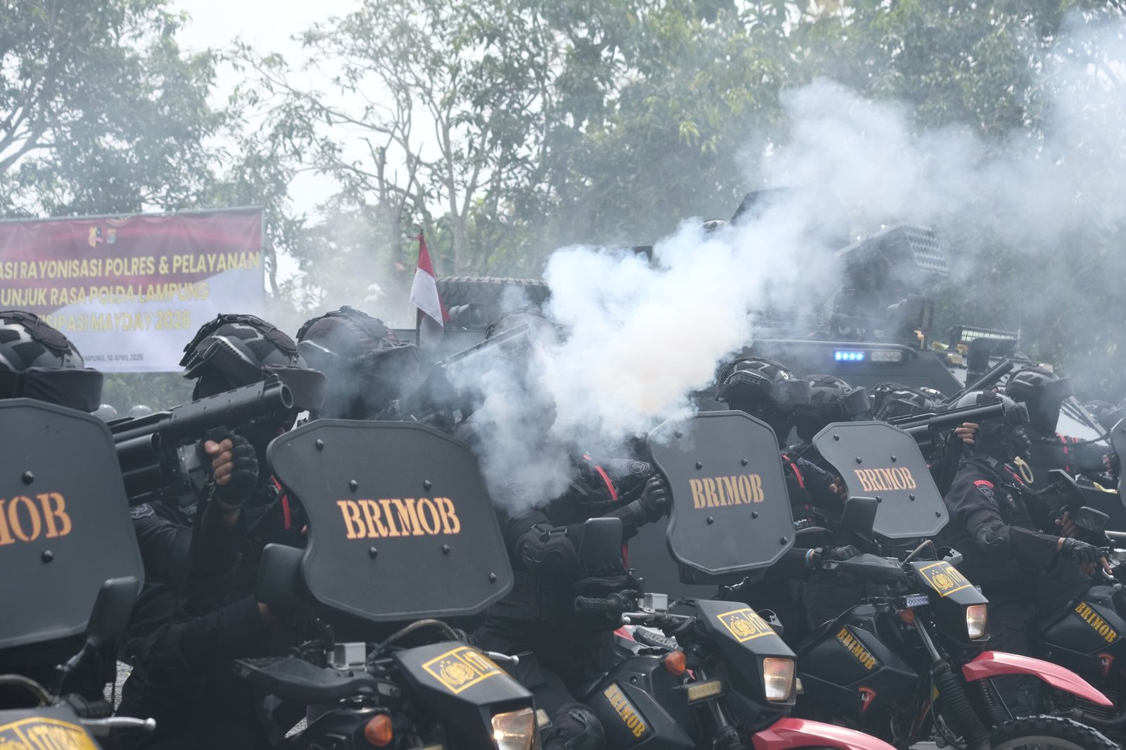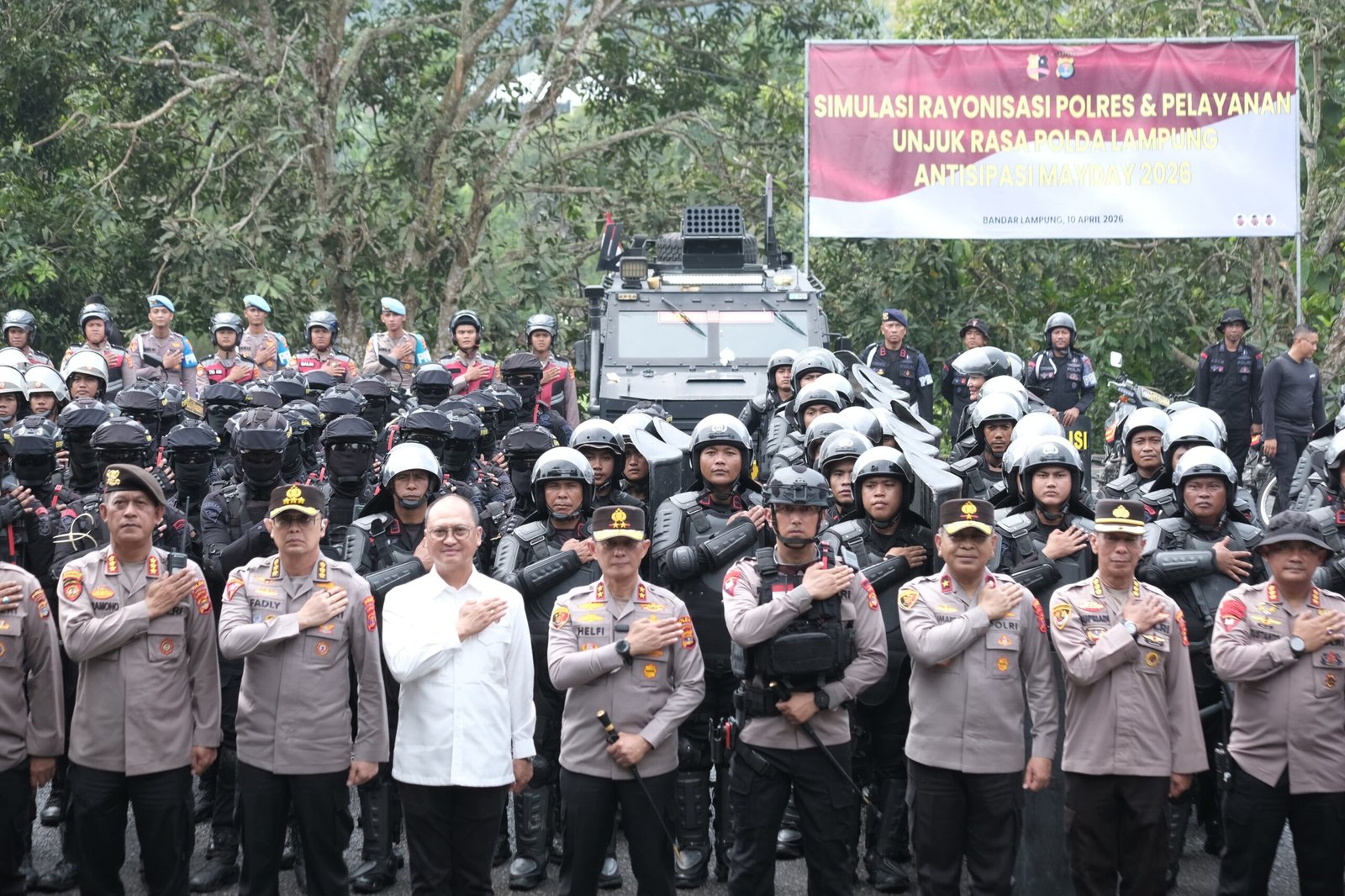 BUSERSIAGA, COM Bandar Lampung — Polda Lampung melaksanakan kegiatan simulasi rayonisasi polres dan penanganan unjuk rasa di Sekolah Polisi Negara (SPN) Polda Lampung sebagai langkah antisipasi menghadapi peringatan Hari Buruh Internasional atau May Day 2026, Rabu (15/04/2026).