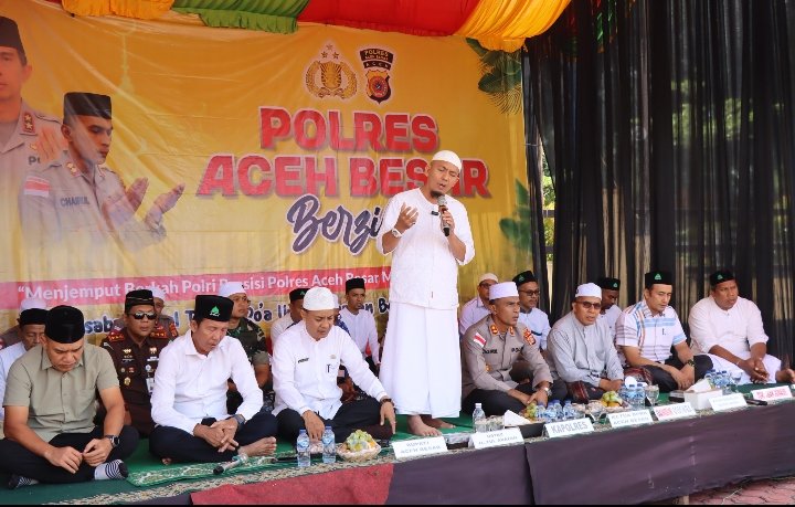Aceh Besar,- Polres Aceh Besar menggelar Zikir dan Doa bersama dalam rangka muhasabah dan sebagai bentuk empati serta kepedulian terhadap para korban bencana banjir dan tanah longsor yang terjadi di wilayah Aceh serta beberapa wilayah di Sumatera yang dilaksanakan di lapangan Mapolres setempat, Senin (19/01/2025)