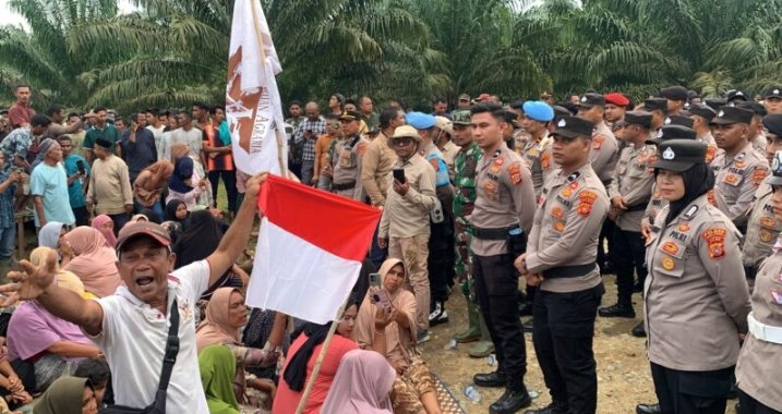 Jalan raya ditutup dengan sepeda motor, serta warga duduk beralaskan terpal dan kardus. Mereka juga membangun tenda darurat sebagai simbol perlawanan. Akibat blokade tersebut, truk-truk sawit perusahaan tidak dapat beroperasi sejak lima hari terakhir.