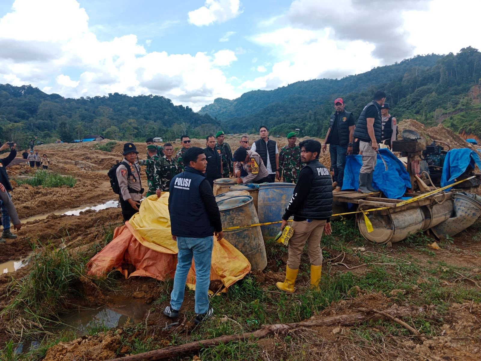 Polres Pidie Bersama Polda Aceh Dan TNI Tertibkan Tambang Emas Ilegal Di Geumpang