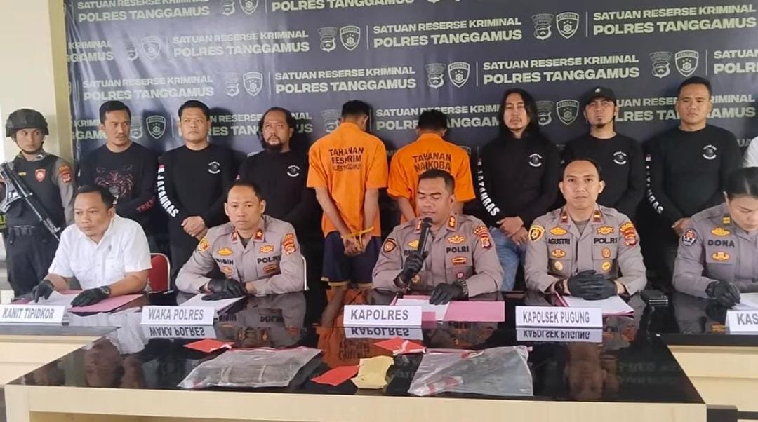 “Keduanya ditetapkan tersangka setelah penyidik menemukan dua alat bukti dikuatkan saksi-saksi,” kata AKBP Rahmad Sujatmiko didampingi Wakapolres Kompol Gigih Andri Putranto, S.H., S.I.K., M.H., Kasi Humas Iptu Primadona Laila, S.H., Kapolsek Pugung Ipda Dr. Agustri Kurniawan, S.H., M.H., dan Kanit Tipidkor Satreskrim Ipda Tri Wijayanto, S.Pd., Kamis 18 Desember 2025.
