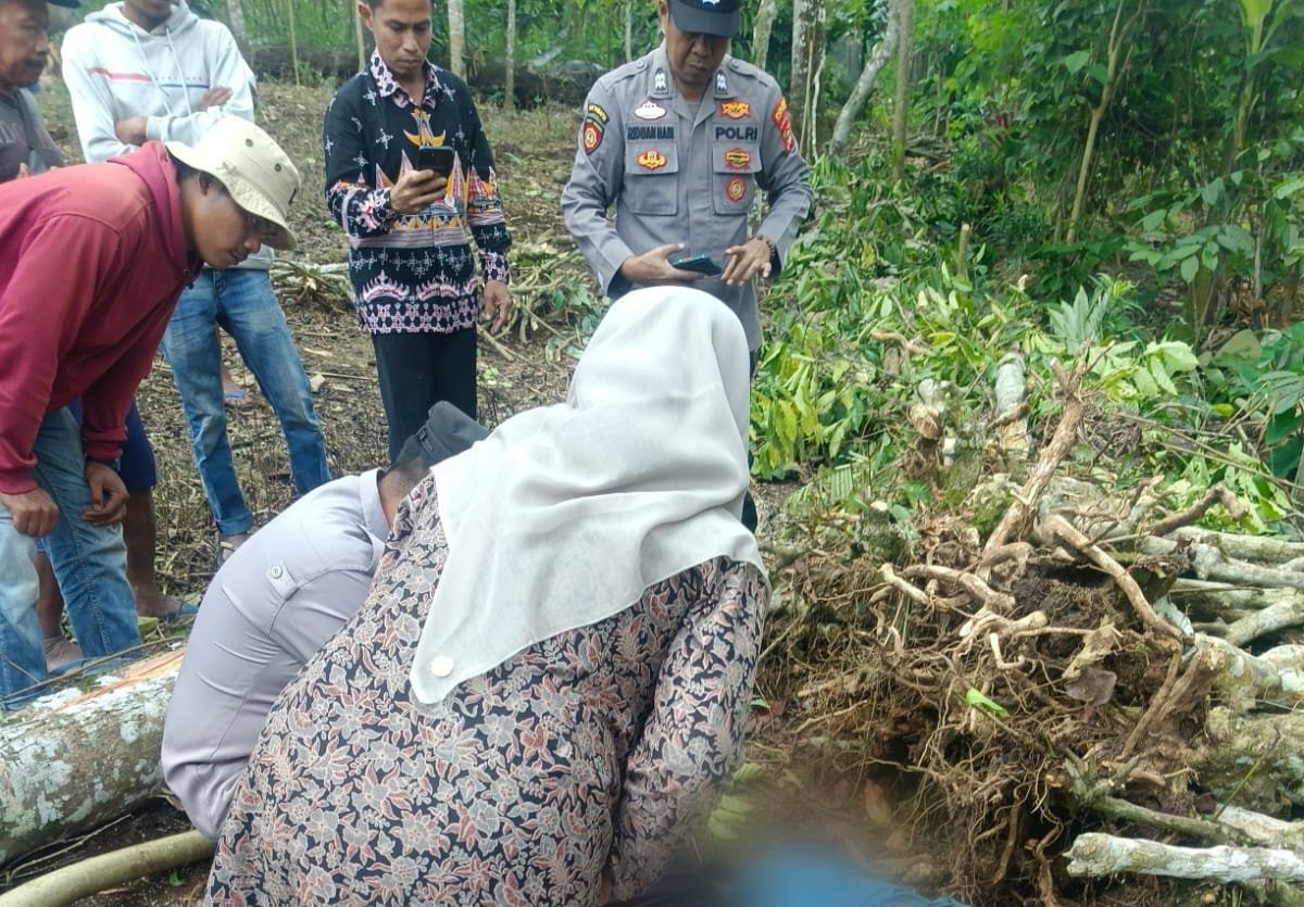Saksi Yato (68), yang saat itu hendak mencari rumput di sekitar lokasi, melihat korban sudah tergeletak di tanah dengan posisi tubuh tertimpa pohon. Saksi kemudian berteriak meminta bantuan kepada Suyanto (65) serta warga sekitar untuk memberikan pertolongan.