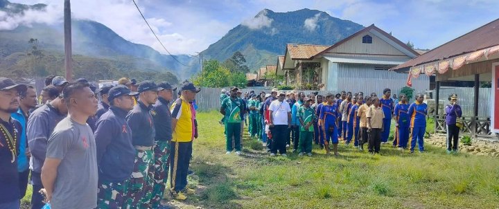 Puncak Jaya – Satgas Pamtas RI-PNG Kewilayahan Yonif 112/DJ Pos Ilu mengikuti jalan sehat dan senam bersama aparat setempat dan warga di Distrik Ilu Kabupaten Puncak Jaya Provinsi Puncak Jaya, Rabu (21/01/2026).