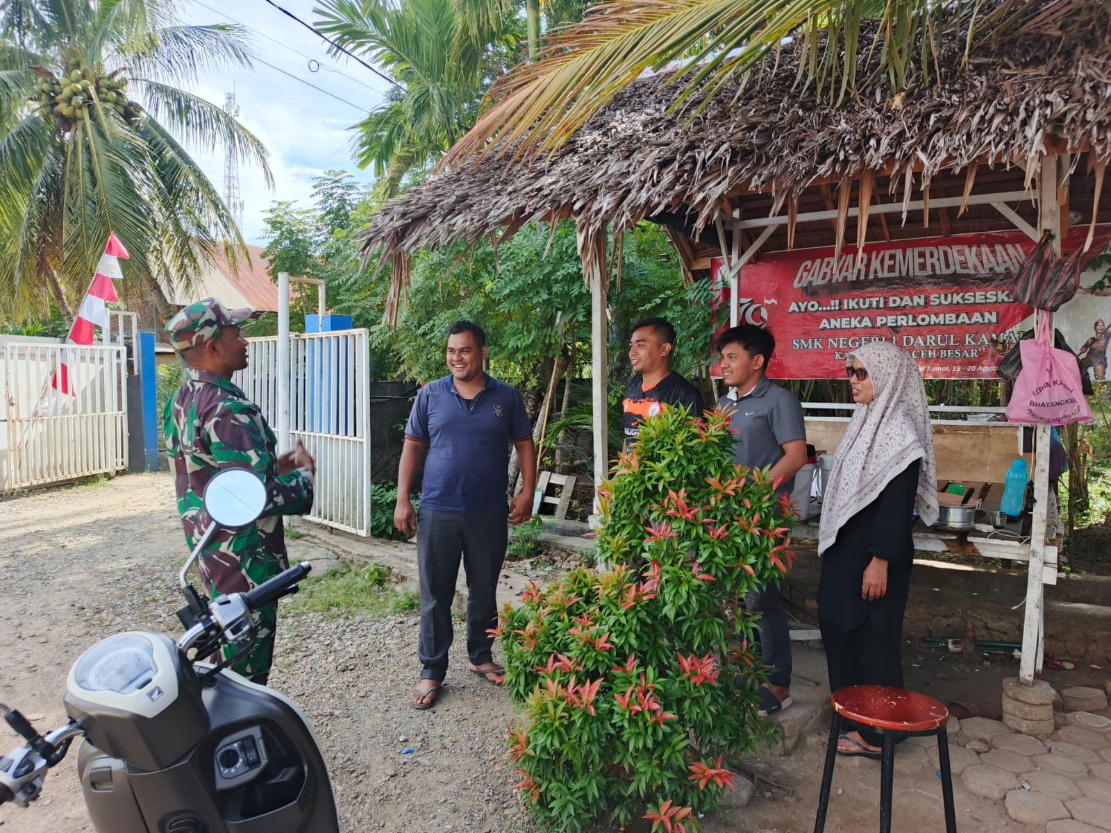 Aceh Besar – Babinsa Koramil 20/Darul Kamal, Serka Osriadi, melaksanakan komunikasi sosial (Komsos) dengan warga Desa Blangkiree, Kecamatan Darul Kamal, Kabupaten Aceh Besar, Minggu (28/9/2025). Kegiatan ini bertujuan untuk mempererat silaturahmi sekaligus menyampaikan pesan-pesan penting terkait kehidupan bermasyarakat.