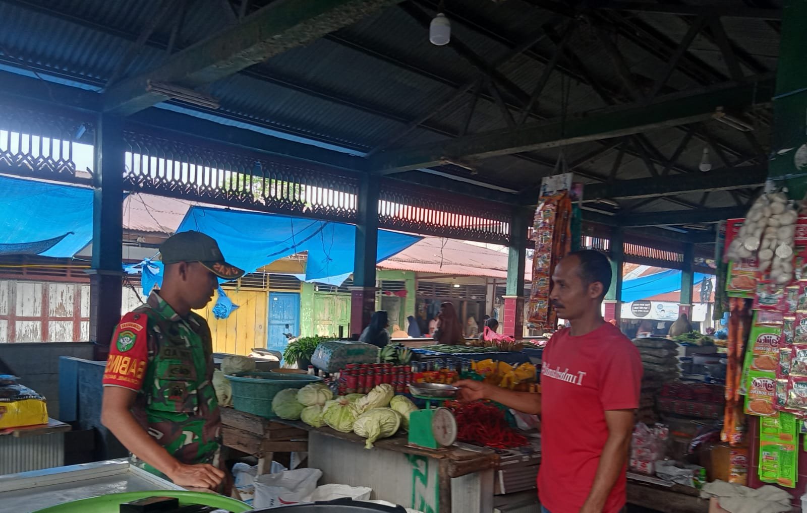 Dalam pemantauannya, Sertu M. Ali Hanafiah menyambangi beberapa pedagang untuk mengetahui perkembangan harga sejumlah komoditas penting seperti beras, minyak goreng, telur, gula, dan sayur-mayur. Selain mengecek harga, Babinsa juga berdialog dengan para pedagang terkait ketersediaan stok barang di pasaran.