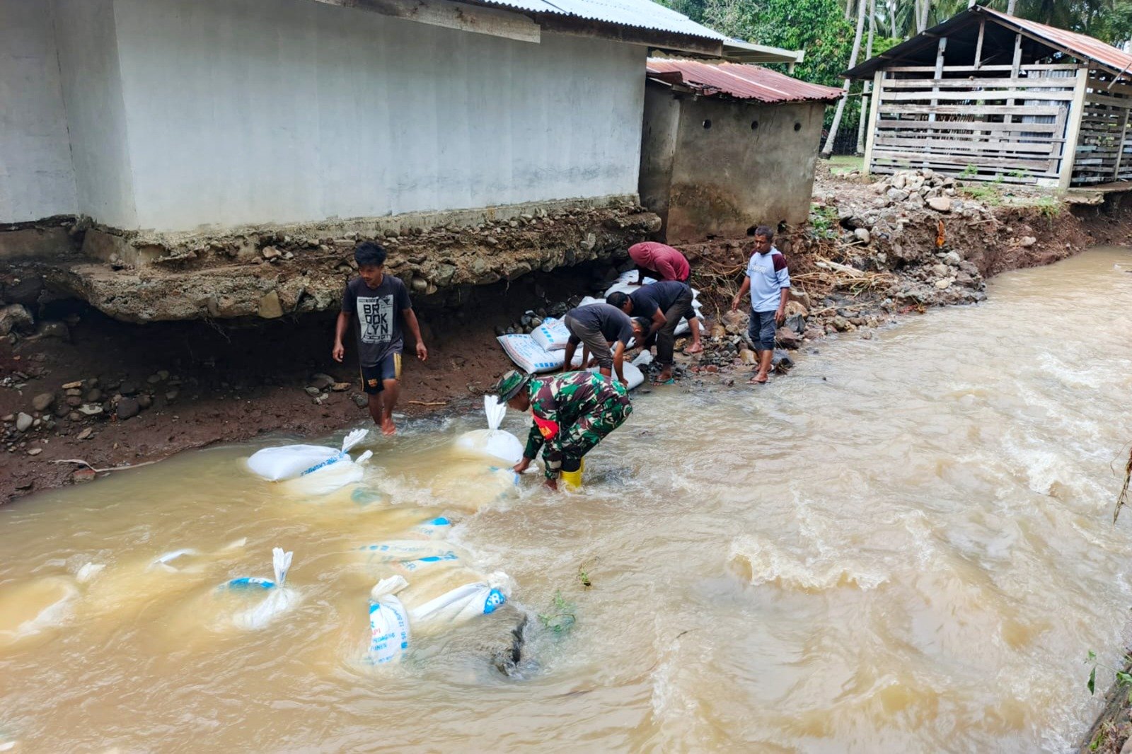 ”Kerusakan pada pondasi ini berpotensi menyebabkan ambruknya saluran irigasi jika tidak segera ditangani. Oleh karena itu, kami bersama warga langsung berinisiatif melakukan penimbunan menggunakan material yang ada,” ujar Kopda Munandar di sela-sela kegiatan.