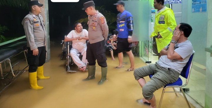 Sigap Bantu Korban Banjir, Kapolsek Julok Turun Langsung Evakuasi Pasien Rawat Inap Pada puskesmas Julok Dini Hari