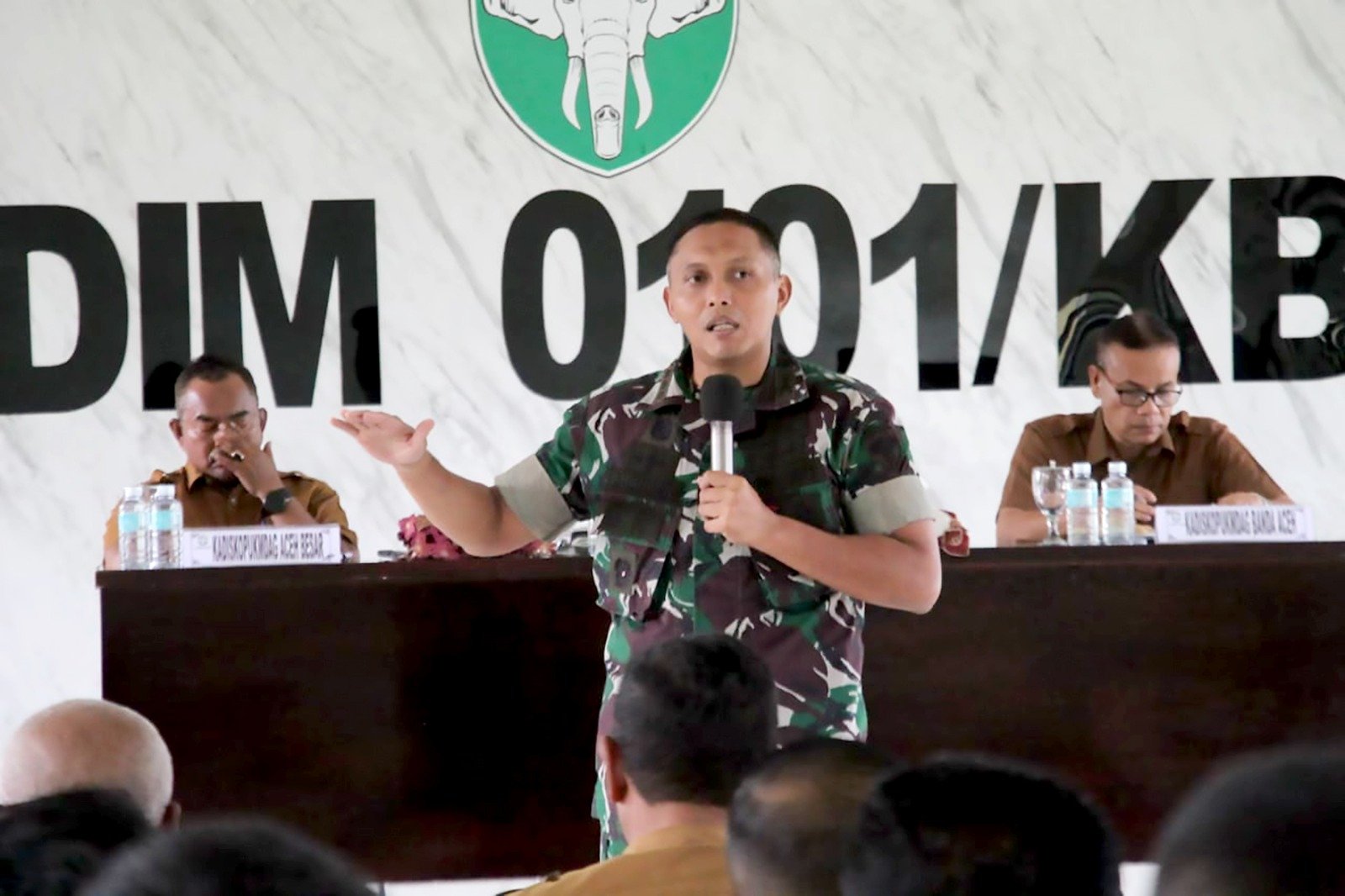 Rakor ini dipimpin langsung oleh Komandan Kodim (Dandim) 0101/Kota Banda Aceh, Kolonel Inf Faurizal Noerdin, S.Sos., M.Sc, serta dihadiri oleh sejumlah pejabat penting lintas instansi. Hadir antara lain Kadiskopukmdag Kota Banda Aceh Dr. Drs. Samsul Bahri, M.Si, Asisten II Bidang Ekonomi dan Pembangunan Kabupaten Aceh Besar M. Ali, S.Sos., M.M, para perwira staf, Danramil jajaran Kodim, serta para camat se-Kota Banda Aceh dan Kabupaten Aceh Besar.