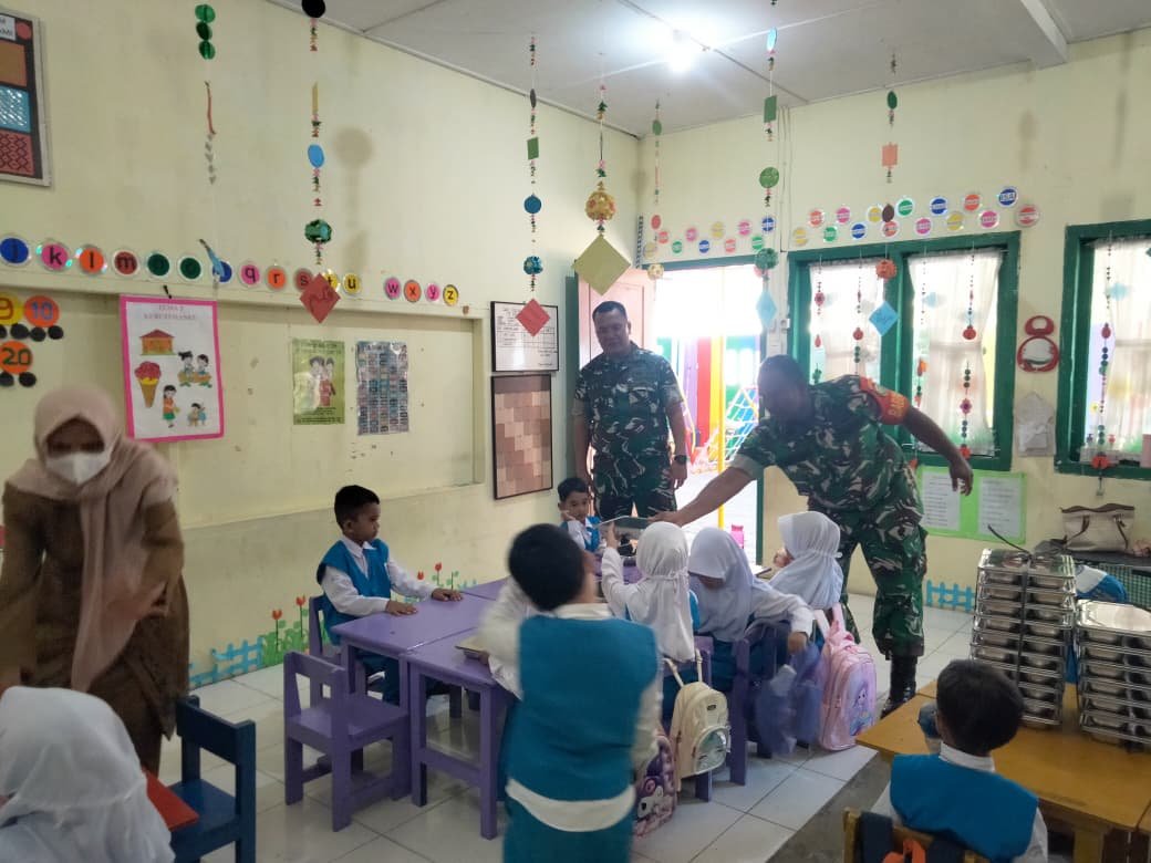 Banda Aceh – Koramil 14/Baiturrahman Kodim 0101/Kota Banda Aceh menunjukkan kepeduliannya terhadap kesehatan generasi penerus bangsa dengan mendampingi pendistribusian makanan bergizi di wilayah binaannya. Kegiatan ini berlangsung di SDN 40 dan TK Pemda Desa Neusu Jaya, Kecamatan Baiturrahman, Kota Banda Aceh, Senin (6/10/2025).