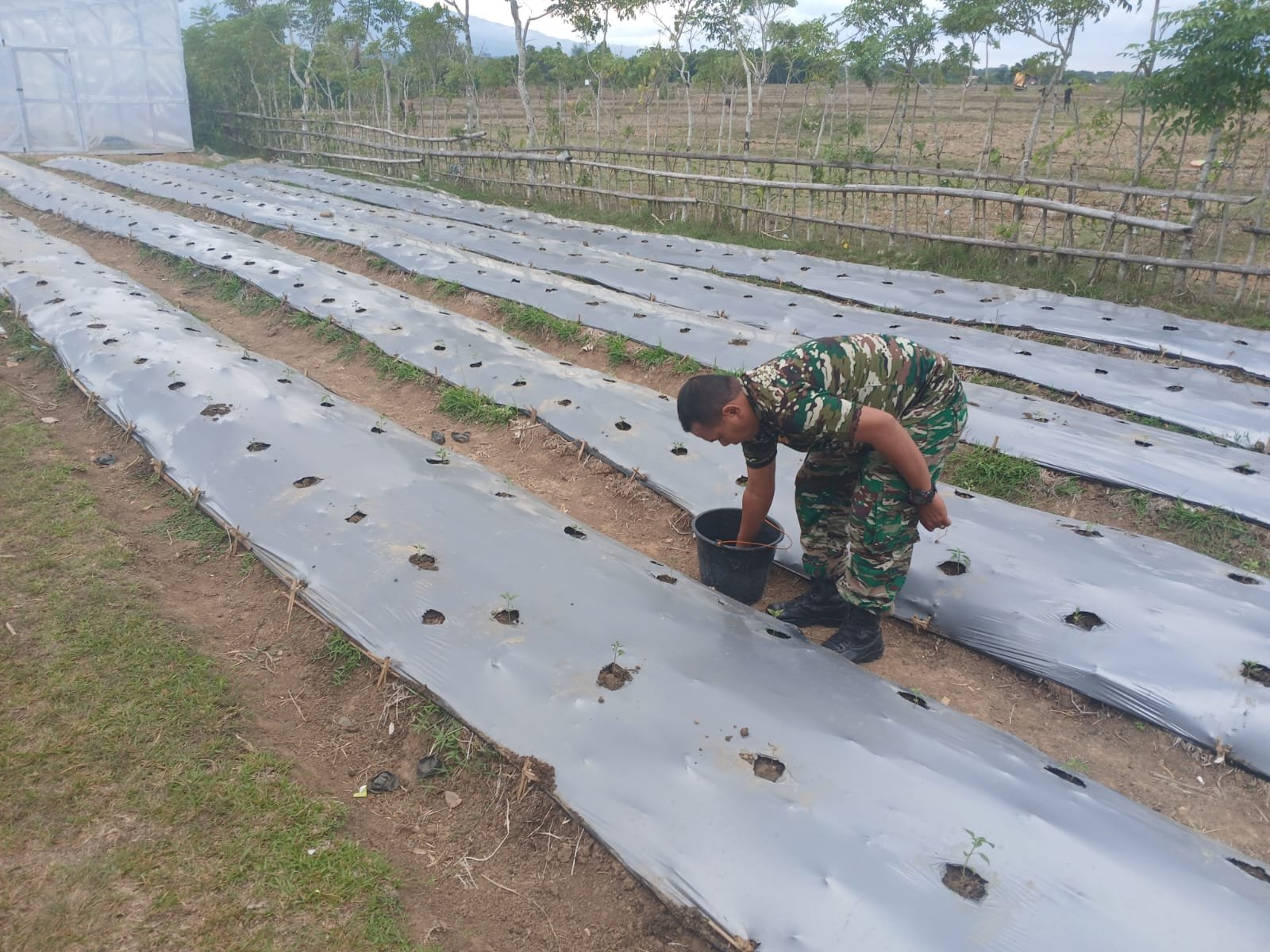 Kegiatan penyiraman ini merupakan bagian dari perawatan rutin agar tanaman cabai tetap tumbuh subur dan menghasilkan panen maksimal. Dengan perawatan yang telaten, prajurit TNI menunjukkan bahwa keberhasilan pertanian tidak hanya ditentukan dari penanaman semata, melainkan juga dari pemeliharaan yang berkelanjutan.