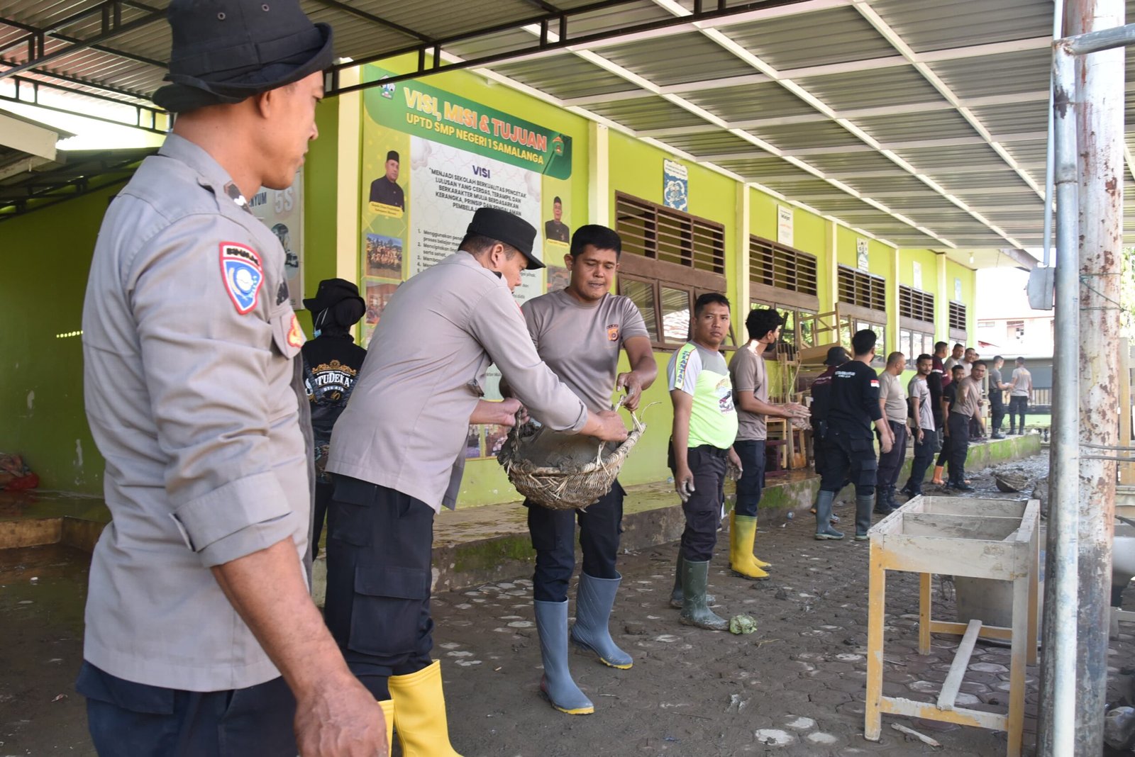 Kabid Humas Polda Aceh, Kombes Pol. Joko Krisdiyanto, S.I.K., mengatakan bahwa kegiatan pembersihan dilakukan untuk membersihkan lingkungan sekolah dari sisa lumpur dan material yang terbawa banjir.