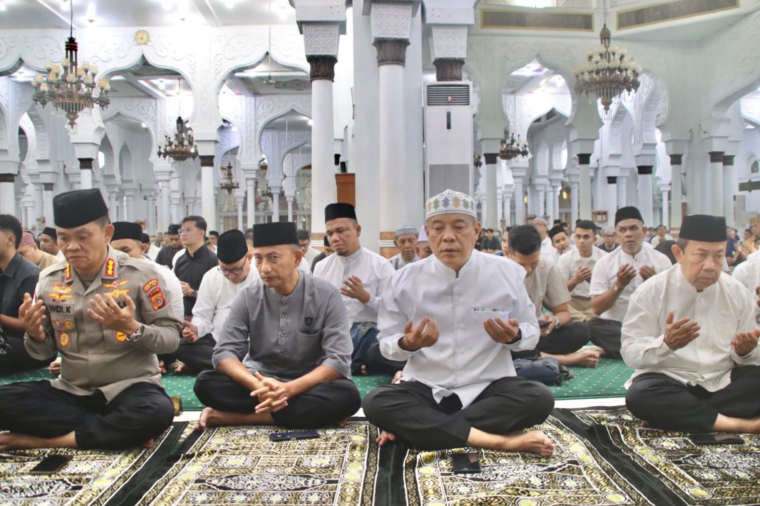 Banda Aceh — Wakapolda Aceh Brigjen Pol. Ari Wahyu Widodo menghadiri peringatan Isra Mikraj Nabi Muhammad SAW yang digelar di Masjid Raya Baiturrahman, Kota Banda Aceh, Kamis, 15 Januari 2026.
