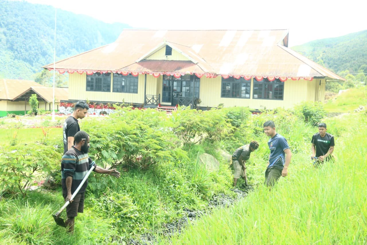 Puncak Jaya – Dalam rangka menjaga kondisi lingkungan supaya selalu terlihat bersih dan rapi, Satgas Pamtas RI-PNG Yonif 112/DJ Pos Kota Baru bersama warga gelar gotong royong di Kampung Pagaleme Distrik Mulia Kab. Puncak Jaya Prov. Papua Tengah, Selasa (09/12/2025).